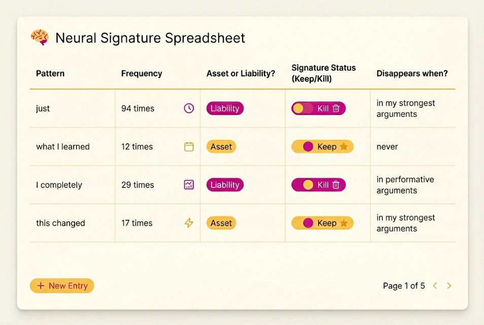 I audited my own writing and found 94 "justs" leaking revenue from my business. Here is the "Neural Signature" protocol to code your authority into AI.