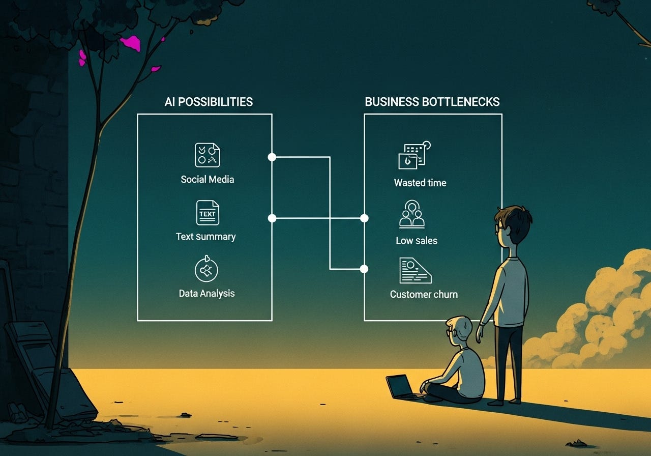 Now, draw lines. Connect the possibilities in the first column to the pain in the second. This simple act moves you from playing with AI to solving business problems with AI.