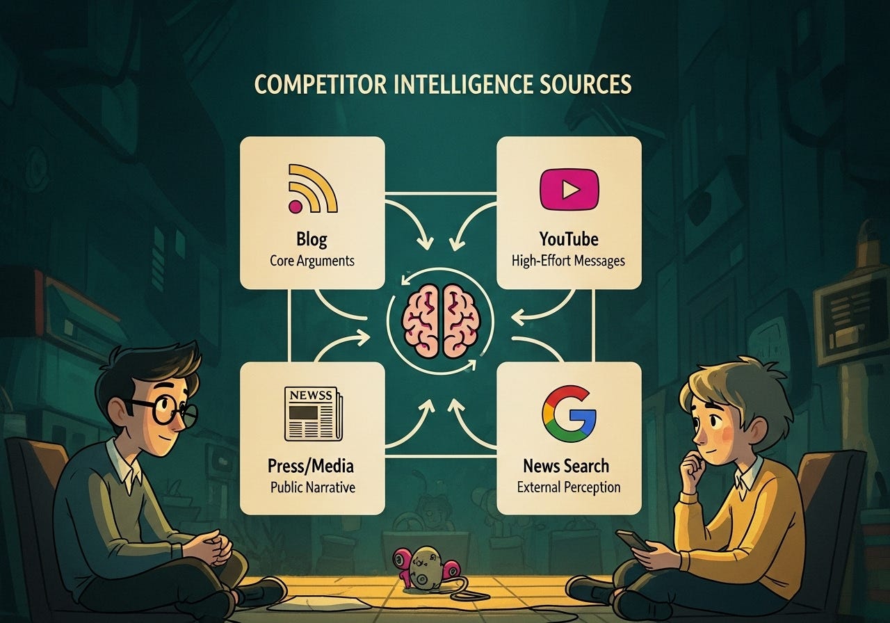 Your "AI Competitive Intel" agent is your own private SIGINT analyst, decoding the strategic intent behind the content your competitors produce.
